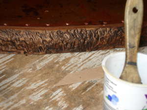 The most intriguing part of this piece of art, to me, is the process Mike uses to finish the edge. He starts with the piece of wood, and with his dremel tool, he hand carves the look of rough cut wood into the edge.