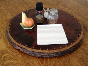Mike has made other Lazy Susan’s as well, and is in the process of creating a beautiful copper topped foyer table with this rustic edge that I will post when it is finished.
