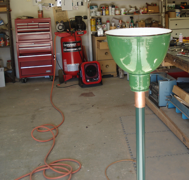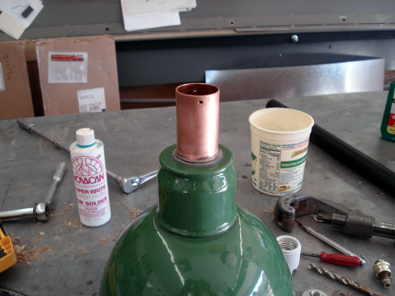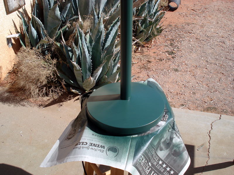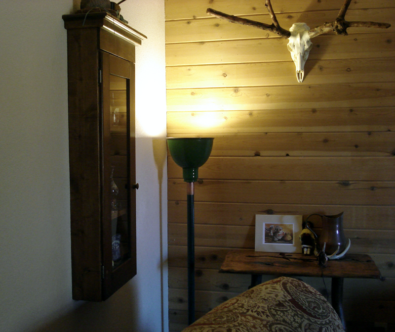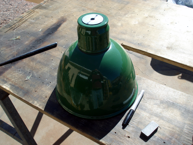This 10″ shade started out on the work bench, getting revamped and rewired to become our new reading light.