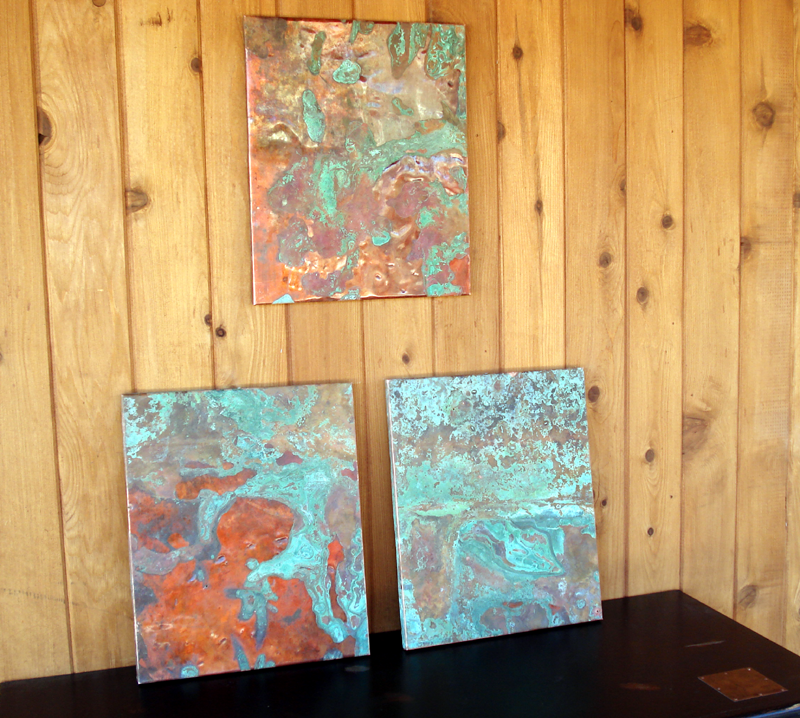 This copper triptych is recycled copper at its best. Time and nature do the transformation, and Mike sees the art in it.