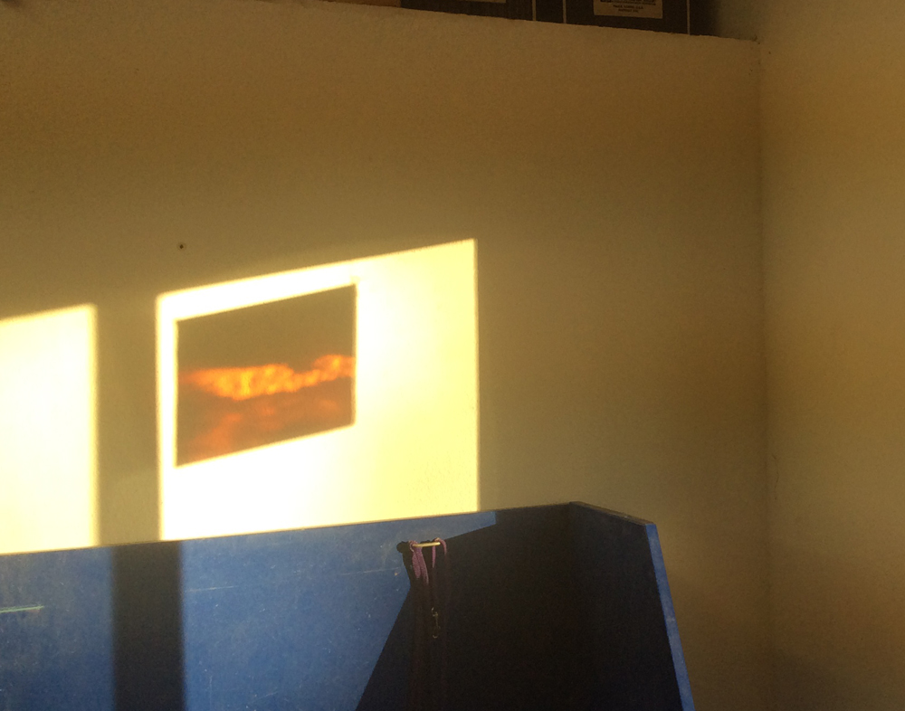 The photo doesn’t do the reflection justice, but if you were able to look up close what you would see is our desert! It is our iconic Red Mountain, and the incredible desert laid out in front of it. You would see the washes and sagebrush. You’d think you were walking through our picturesque red sand desert at sunset with nothing but peace and quiet surrounding you.