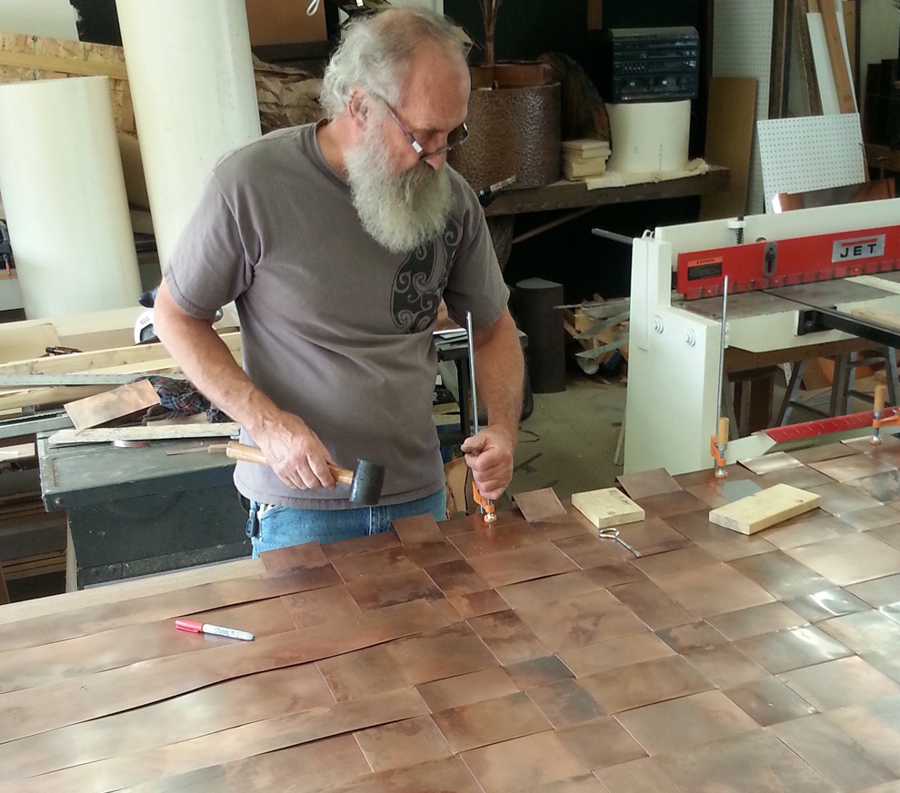 It’s been a busy month in our world. This month, we shipped the Copper Barn Doors that Mike painstakingly worked on for several weeks. Strips of copper are woven in a random pattern that flows with warm reds, black and golds. These doors were amazing and will most certainly add classic beauty to their new home. I’m always awed at the engineering that goes into the making of Mike’s pieces that move, function and serve a creative purpose in their space. Copper is a unique and beautiful material. Who wouldn’t want half a wall of it in their bedroom to relax them at the end of the day?
